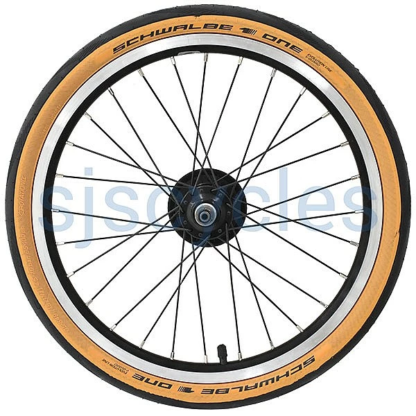 The distinctive Tanwall tyres afford a Brompton a unique look. Custom made by Schwalbe and once exclusive to the Brompton CHPT3 2019 edition it is now available to all. Go tan and change it up with the new Schwalbe One tyre.