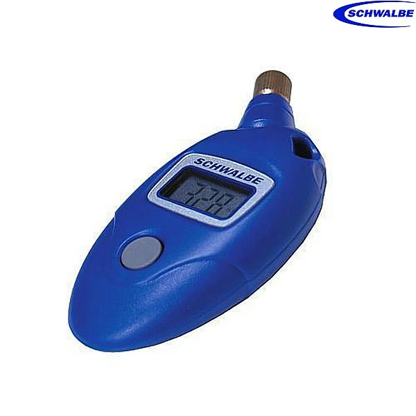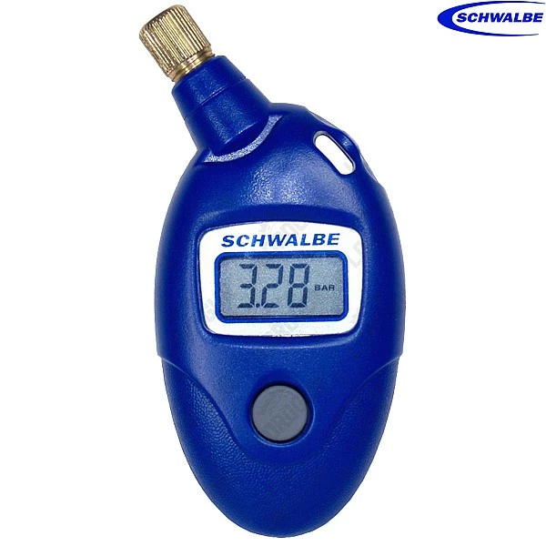 The digital pressure gauge is very precise, measuring pressures up to 11 bar and is suitable for Presta valves. Schwalbe claim it will also function with Schrader valves though in practice we havn’t found it a very good fit on them.