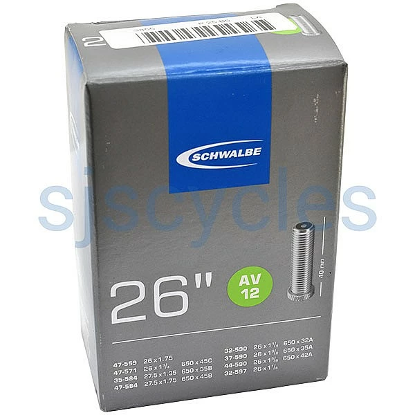 Schwalbe tubes are designed & manufactured to retain air pressure considerably longer than their competitors. Not only is each individual tube inflated & inserted into a mould to ensure that there is even wall thickness & excellent air retention, they are also stored under pressure for 24hrs to test air retention. Valve length of 40mm for standard version. Weight 140g.
