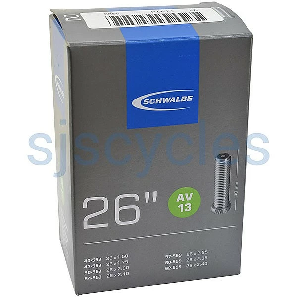 Schwalbe tubes are designed & manufactured to retain air pressure considerably longer than their competitors. Not only is each individual tube inflated & inserted into a mould to ensure that there is even wall thickness & excellent air retention, they are also stored under pressure for 24hrs to test air retention. Valve length of 40mm for standard version. Weight 190g.
