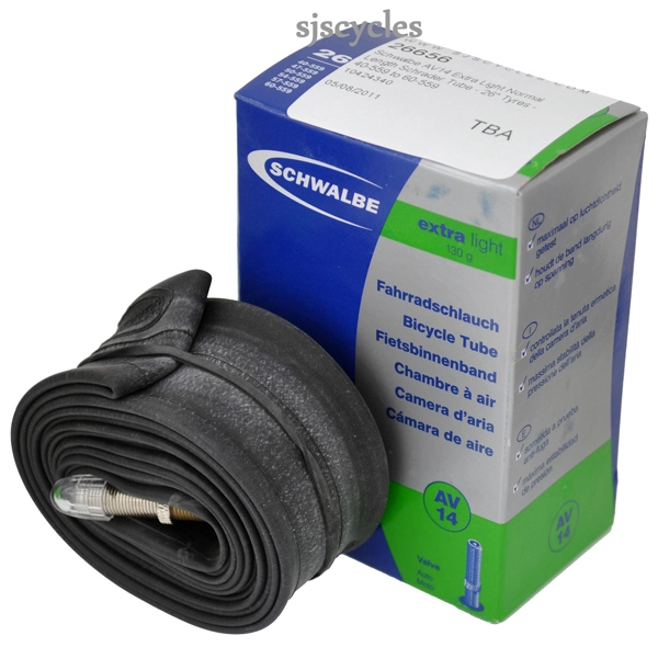 Schwalbe tubes are designed & manufactured to retain air pressure considerably longer than their competitors. Not only is each individual tube inflated & inserted into a mould to ensure that there is even wall thickness & excellent air retention, they are also stored under pressure for 24hrs to test air retention. Valve length of 40mm for standard version. Weight 130g.