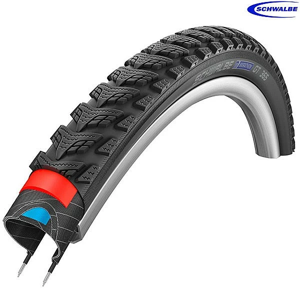 1 Tyre. 4 Seasons, 365 days no tyre change necessary. The Marathon GT 365 is the first tyre which you will ride safely throughout the year in almost every condition. The new lamella tread and the specially developed Four Season compound provide full grip, no matter what time of the year. Of course fitted with DualGuard puncture protection technology for maximum safety.