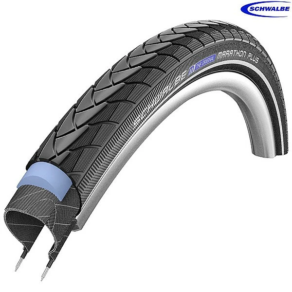 – E-Bike Ready: Due to its great properties Marathon Plus is an ideal choice for E-Bikes (E-25). The main sizes are approved and tested for E-Bikes up to 50 km/h.