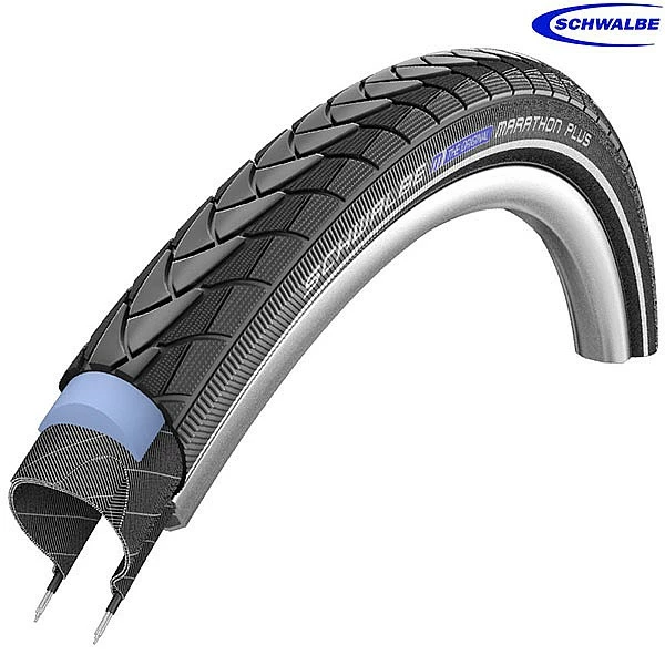 – Flat-Less with Marathon Plus: Only Marathon Plus tires make your bicycle flat-less. The 5mm thick puncture guard protects even against thumbtacks.