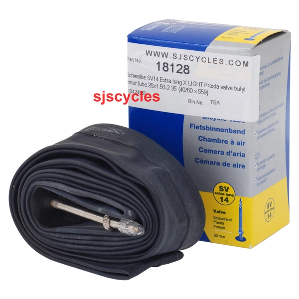 Super lightweight inner tube designed to meet your racing needs. Schwalbe tubes are designed & manufactured to retain air pressure considerably longer than their competitors. Not only is each individual tube inflated & inserted into a mould to ensure that there is even wall thickness & excellent air retention, they are also stored under pressure for 24hrs to test air retention. Valve length of 60mm for Extra Long version. Weight 130g.