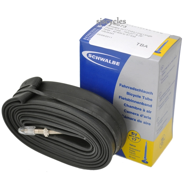 Schwalbe tubes are designed & manufactured to retain air pressure considerably longer than their competitors. Not only is each individual tube inflated & inserted into a mould to ensure that there is even wall thickness & excellent air retention, they are also stored under pressure for 24hrs to test air retention. Valve length of 60mm for Extra Long version. Weight 150g.