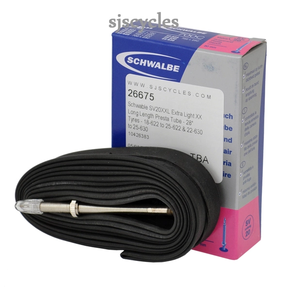 Super lightweight inner tube designed to meet your racing needs. Schwalbe tubes are designed & manufactured to retain air pressure considerably longer than their competitors. Not only is each individual tube inflated & inserted into a mould to ensure that there is even wall thickness & excellent air retention, they are also stored under pressure for 24hrs to test air retention. Valve length of 80mm for Extra Extra Long version.