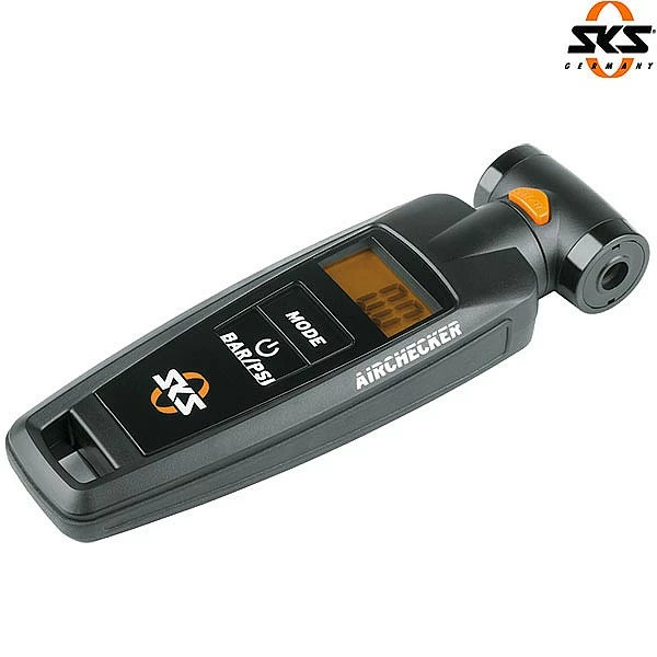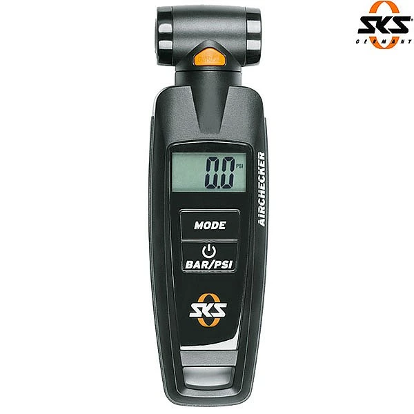 SKS presents a digital gauge to a completely new design, specially developed for cycle tyres. Thanks to the swivelling Duo head, the backlit display with its XL-format digits is always easy to read. The display can also be switched from bar over to PSI. The reduction button allows the pressure to be regulated exactly one tenth of a bar. From now on you will find the Airchecker at every race and every tour.